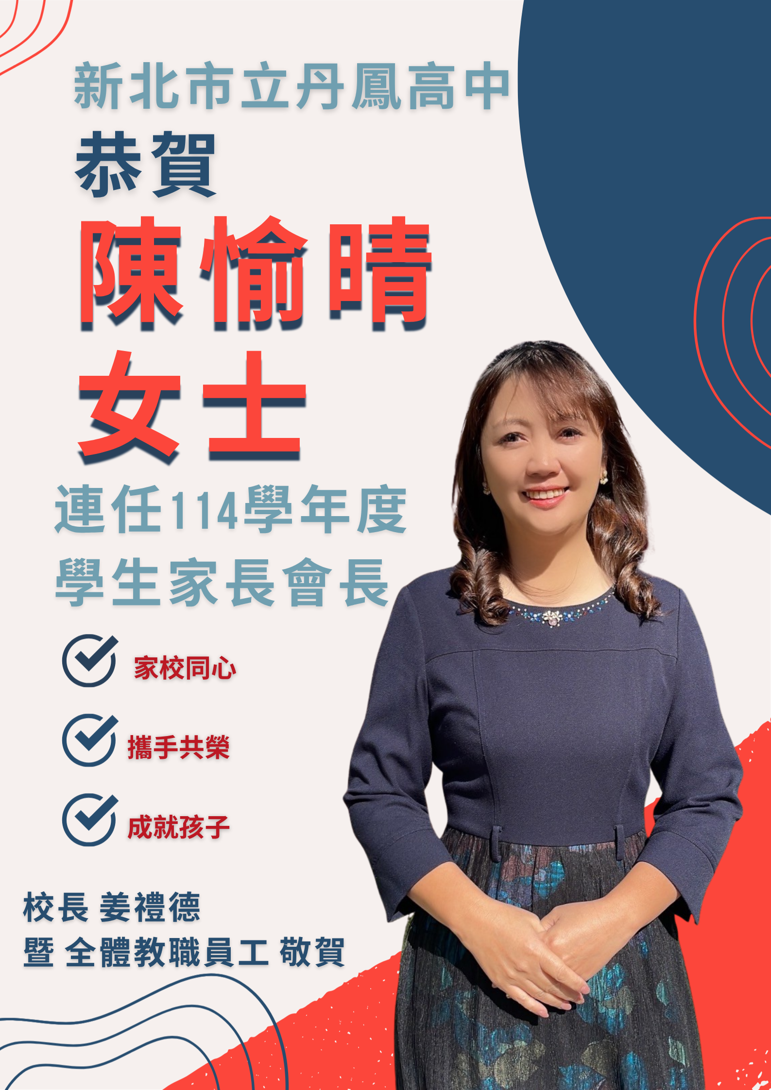 恭喜陳愉晴女士連任新北市立丹鳳高中114學年度學生家長會長